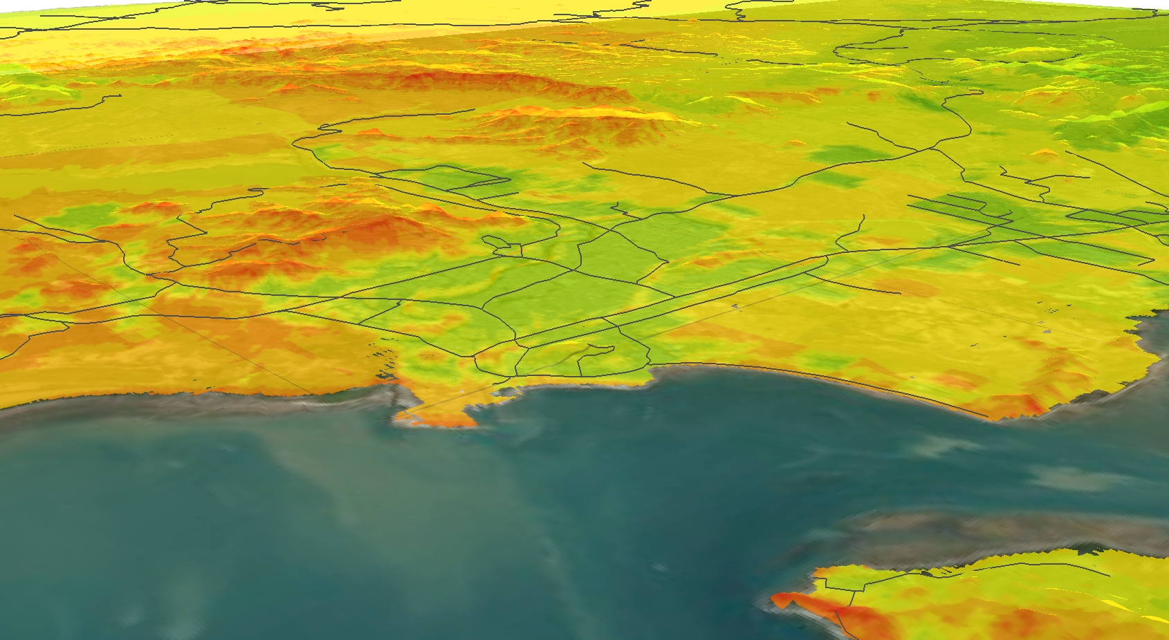 - How wind moves over a hill (known as the topographic effect) has a strong impact on wind behaviour and is determined using spatial algorithms.