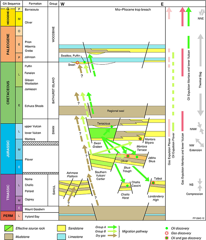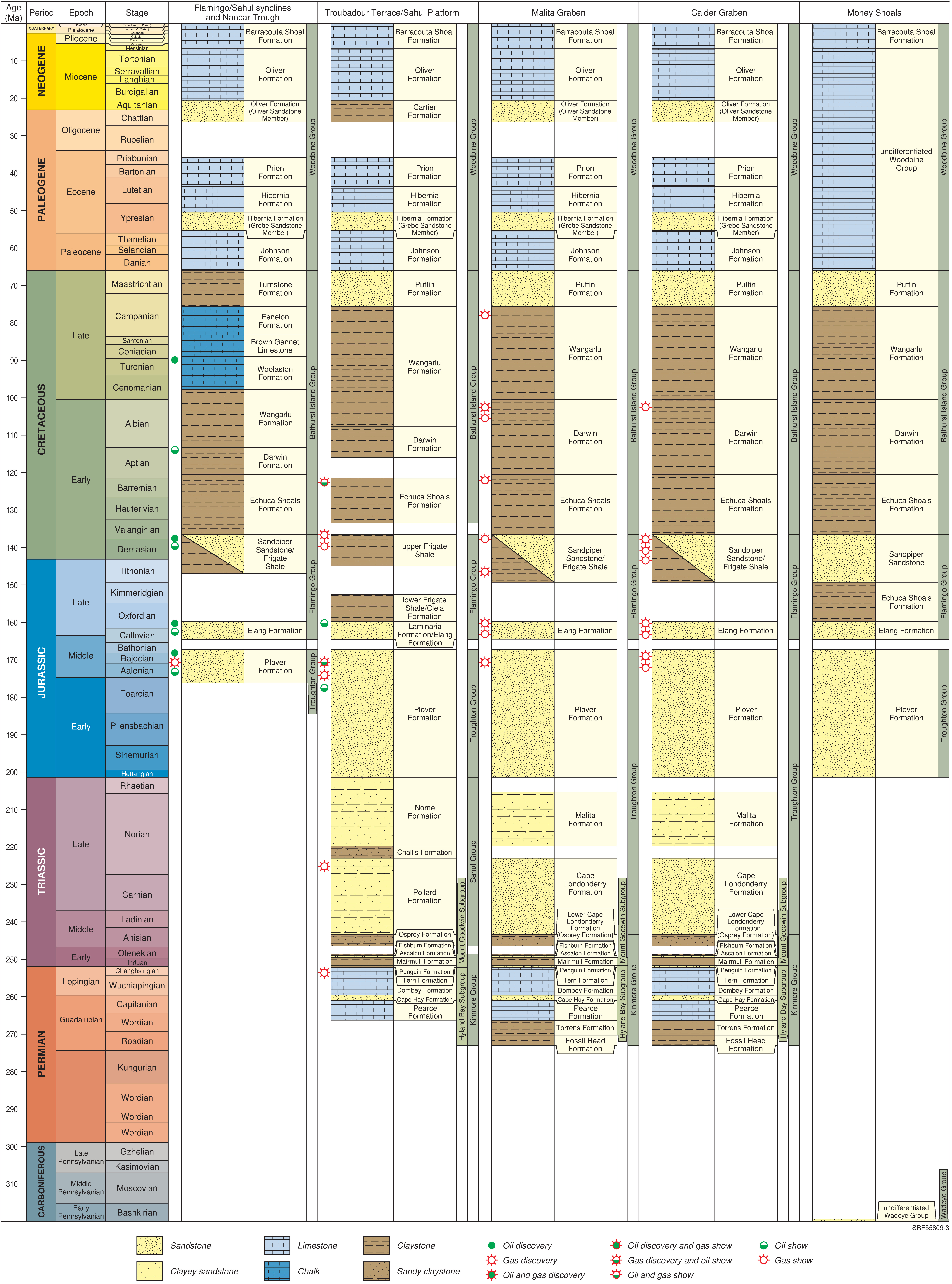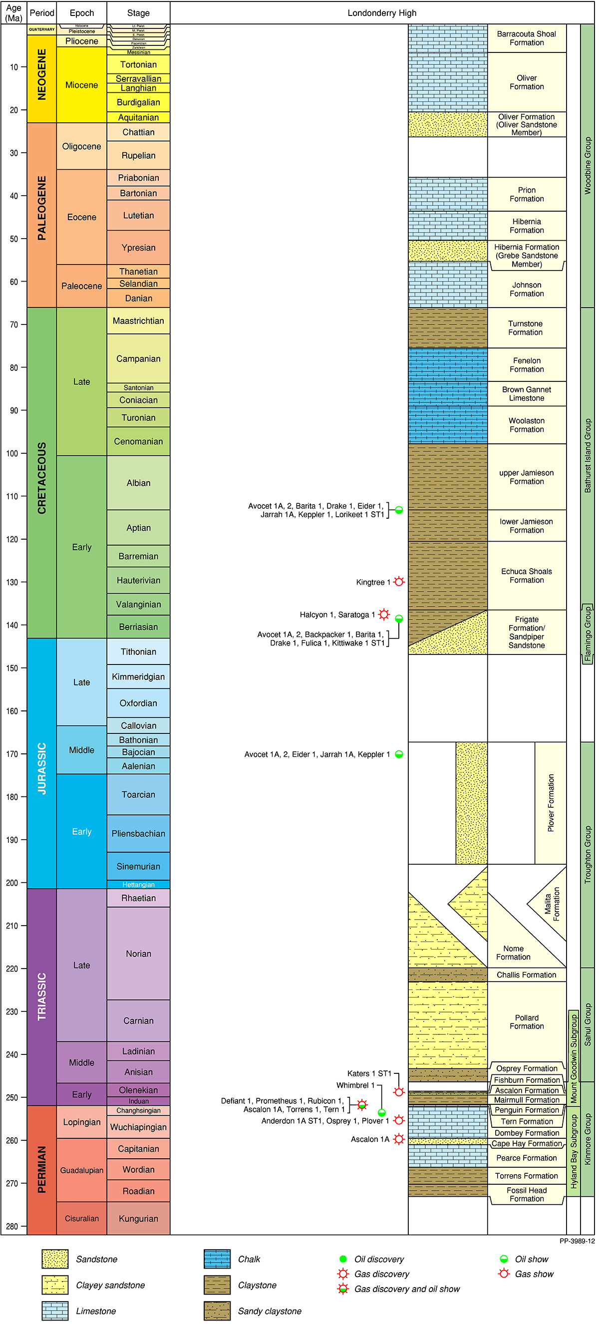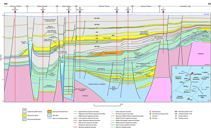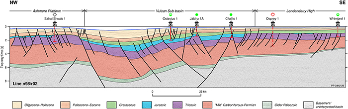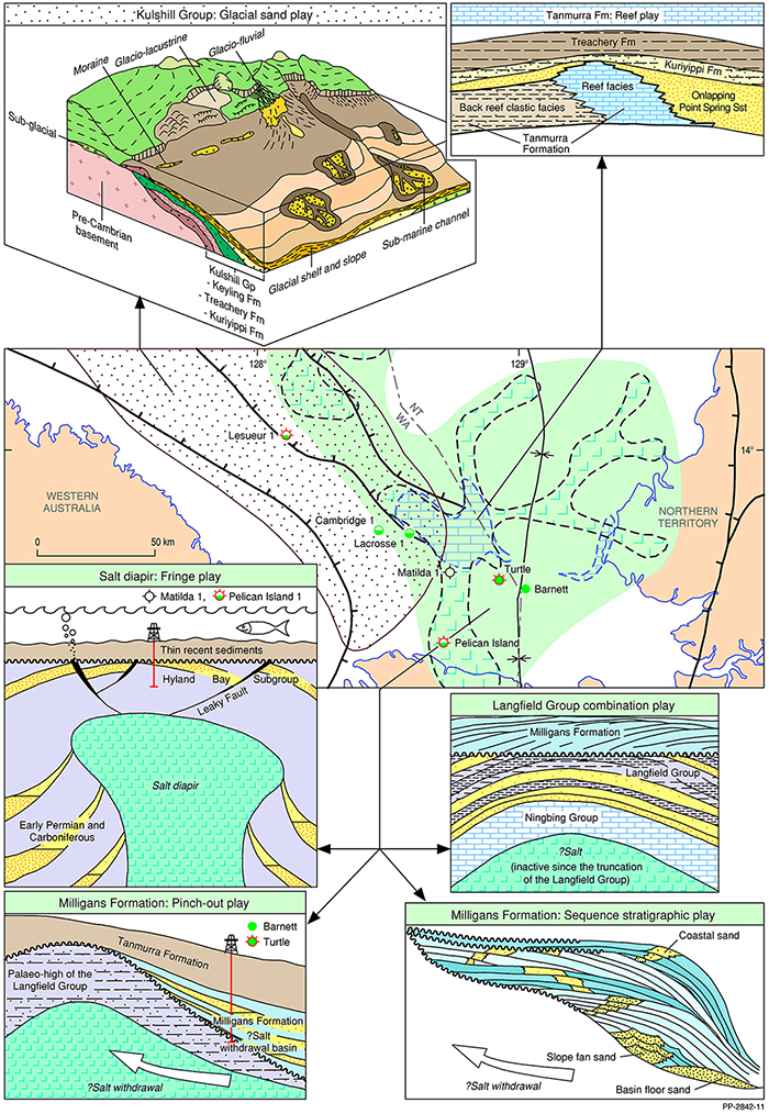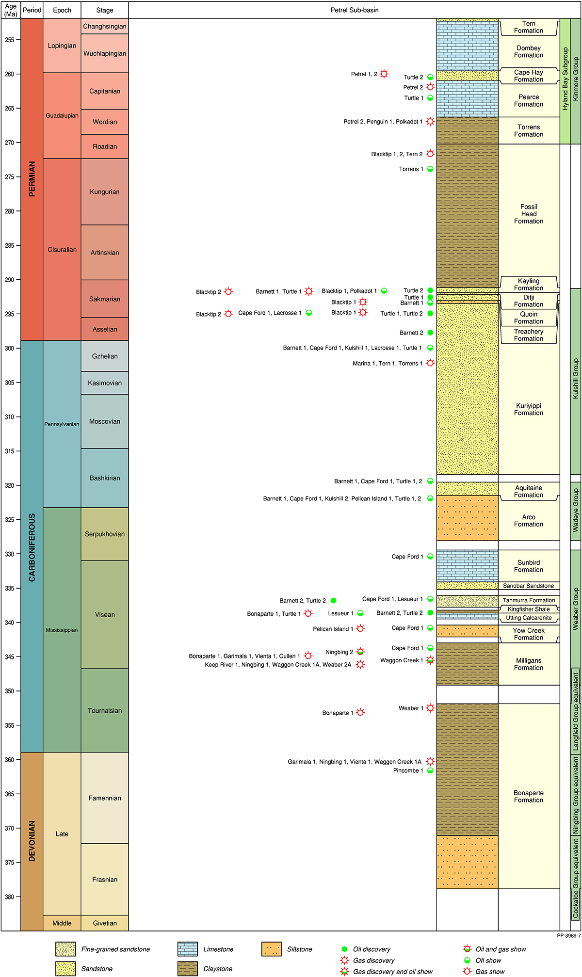 The Bonaparte Basin represents the easternmost offshore province of Australia’s North West Shelf comprising also the Browse, Roebuck, Offshore Canning and Northern Carnarvon basins (Figure 1). Located predominantly offshore (Figure 2), the Bonaparte Basin contains a Paleozoic, Mesozoic and Cenozoic sedimentary succession that exceeds 15 000 m in thickness in the southern portion (“Petrel Sub-basin”) and a Mesozoic-Cenozoic basin fill in the northern part. The basin has been an established oil and gas province since the development of the Bayu-Undan and Blacktip gas discoveries (1995 and 2001 respectively) and first oil discoveries in the Vulcan Sub-basin (Jabiru in 1986; Challis and Cassini in1989).