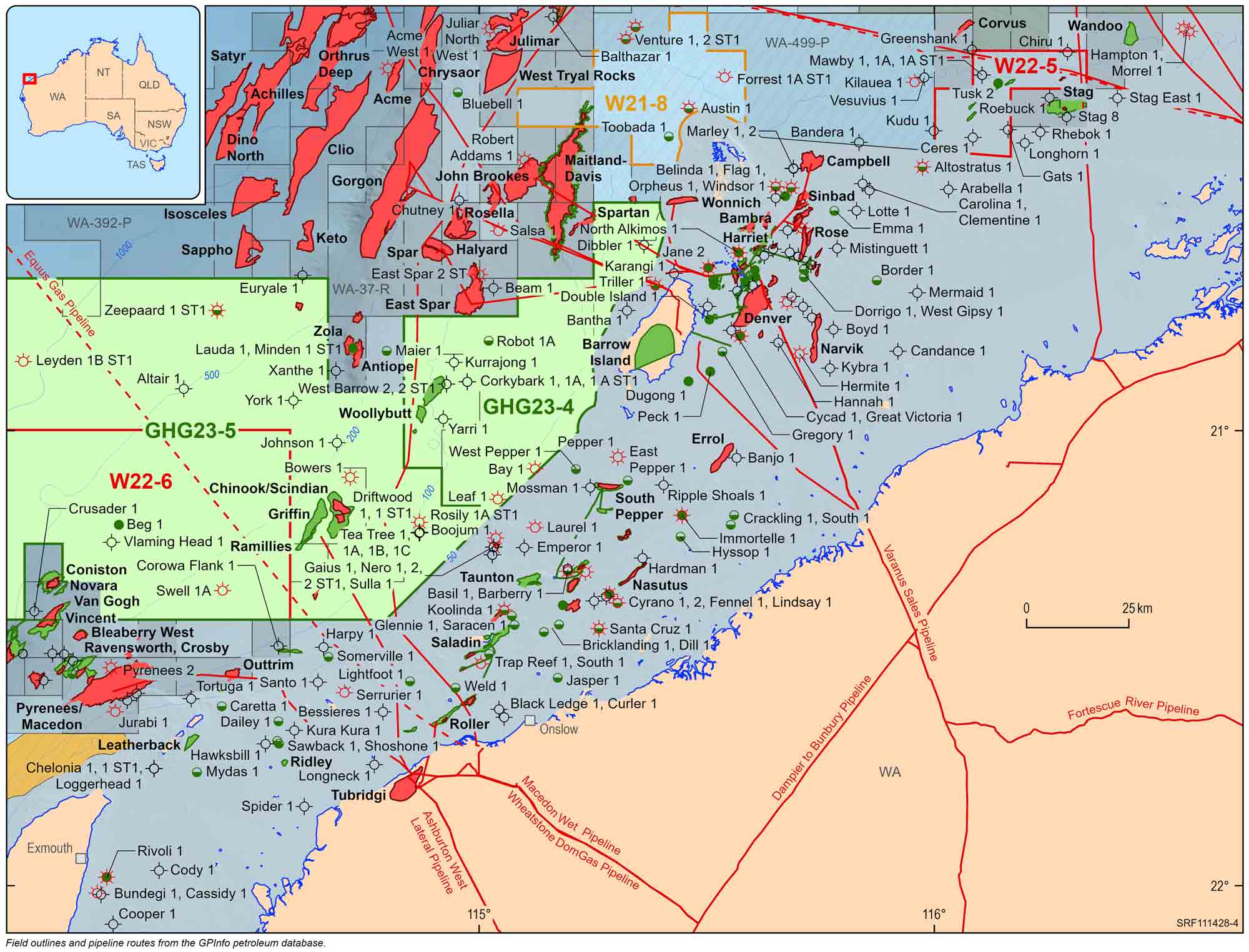 - Storage targets: depleted fields (i.e. the Triassic hosted Challis and Cassini oil fields) and possible saline aquifers if suitable
