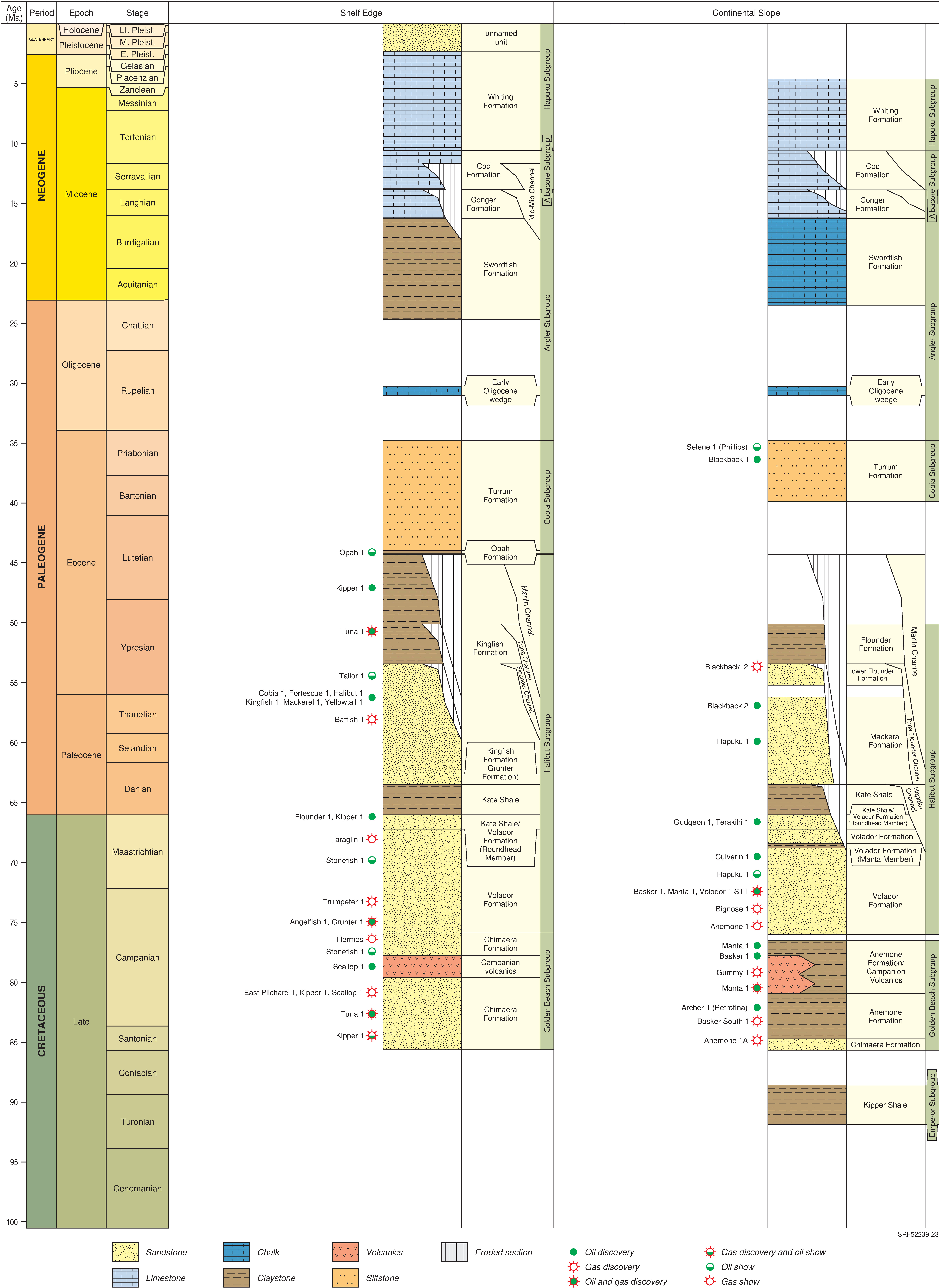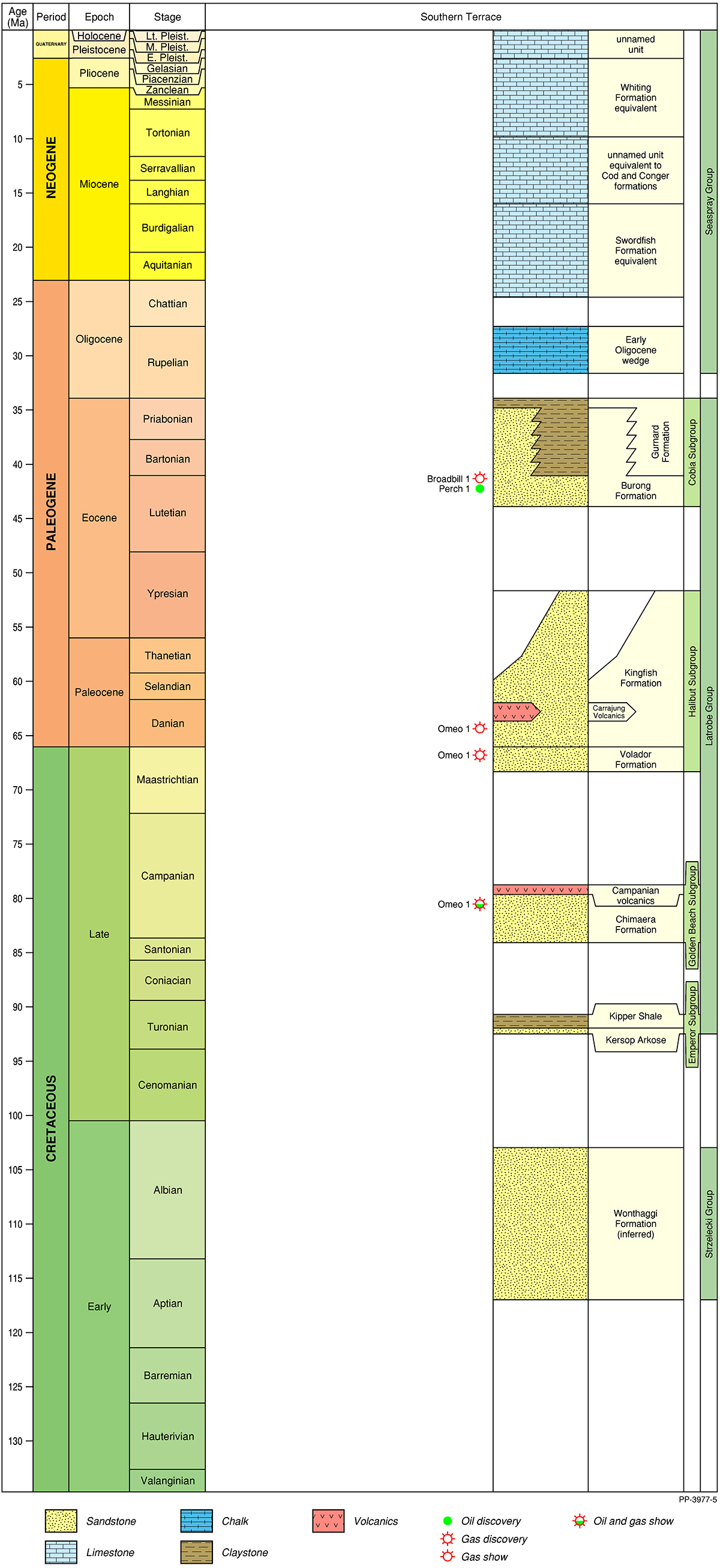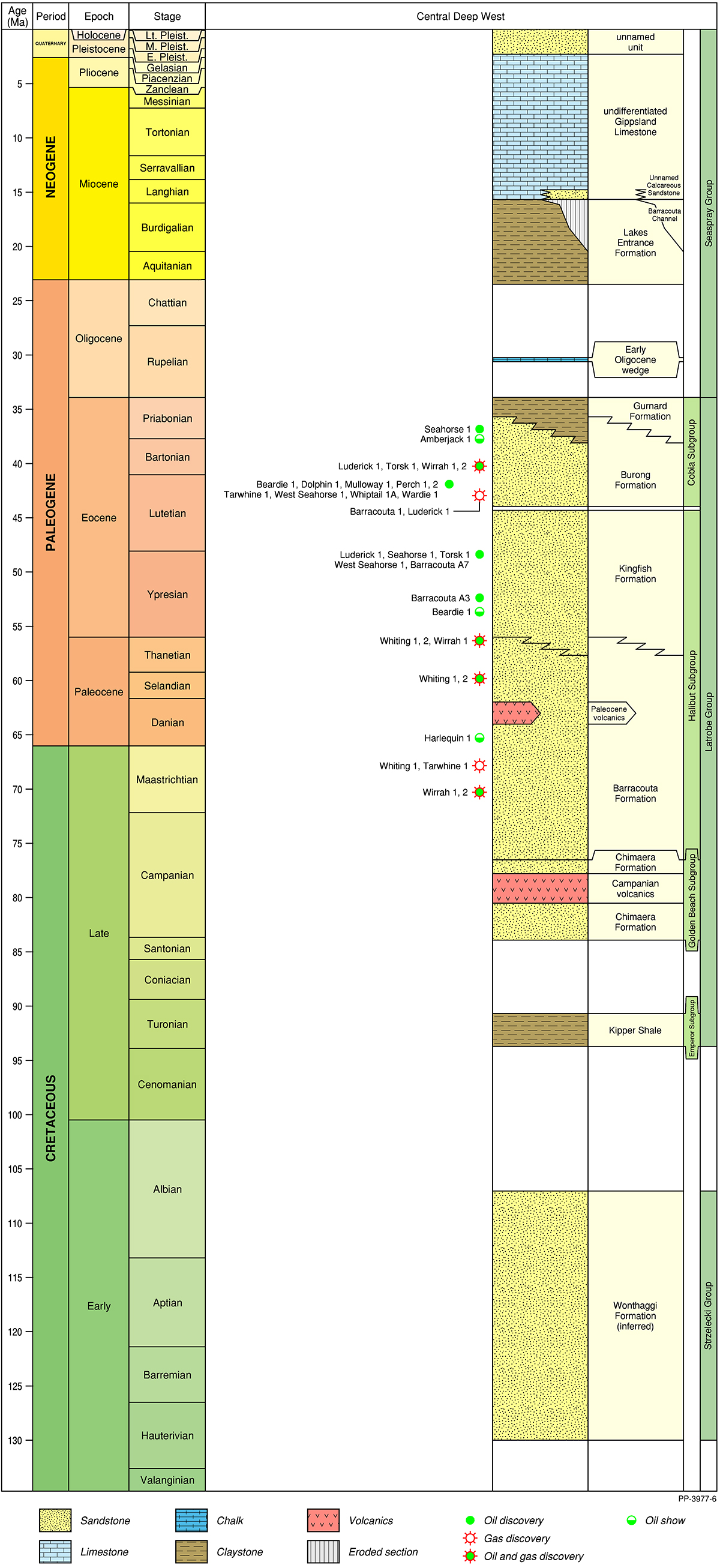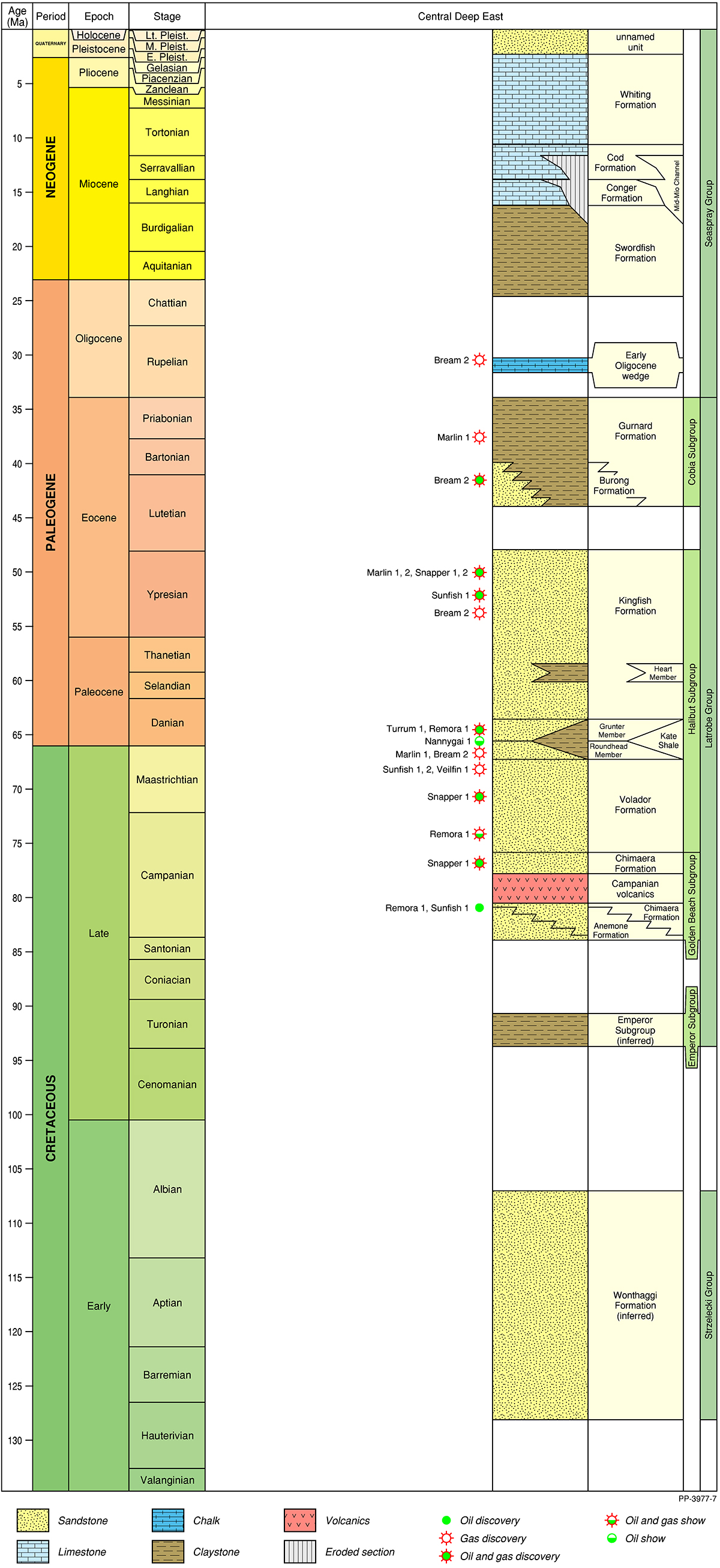 The Gippsland Basin in southeastern Australia is located about 200 km east of the city of Melbourne, covering about 46 000 km2, of which two thirds are located offshore (Figure 1). The Gippsland Basin is recognised as one of Australia’s premier hydrocarbon provinces, having continually produced oil and gas since the late 1960s. In May 2022, remaining reserves were estimated at 1.64 Tcf (1844.5 PJ) of natural gas and ethane, and 94 MMbbls (552.7 PJ) of oil and natural gas liquids (EnergyQuest, 2022). Several petroleum systems operate in the basin, with the largest oil and gas fields hosted by top-Latrobe Group (Eocene) shallow marine barrier sandstones, and additional discoveries made in intra-Latrobe Group (Upper Cretaceous–Paleocene) coastal plain and deltaic channel sandstones. Despite its mature status, parts of the basin remain underexplored and offer a variety of untested plays.