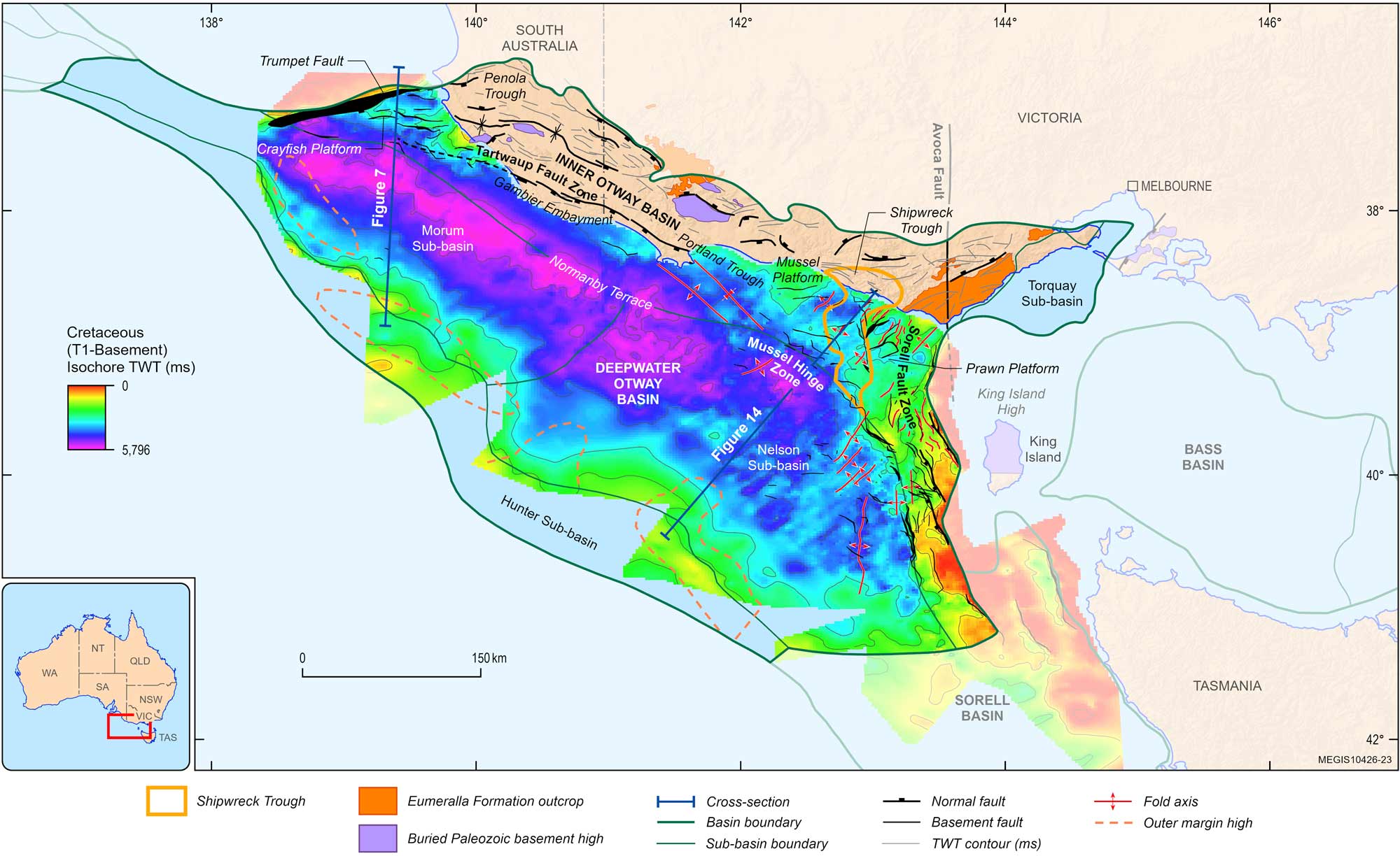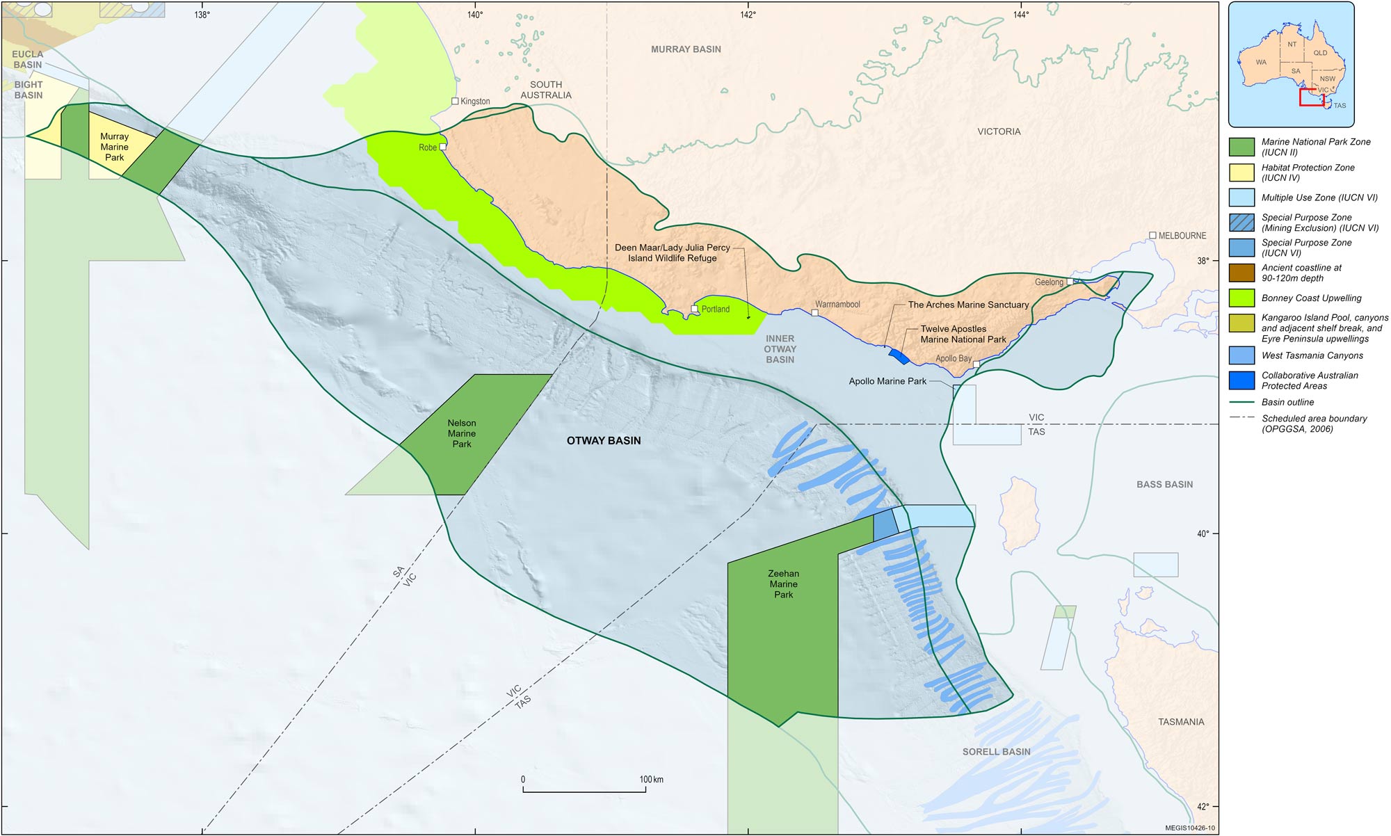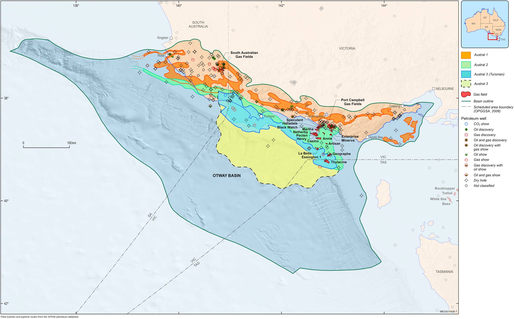 The Otway Basin is a broadly northwest to southeast striking rift basin that extends for approximately 500 km along the onshore and offshore parts of southeastern Australia (Figure 1). The basin covers an area of approximately 165 000 km2 in offshore Victoria, South Australia and Tasmania and onshore Victoria, South Australia. Approximately 83% of the basin is located offshore and 17% onshore.