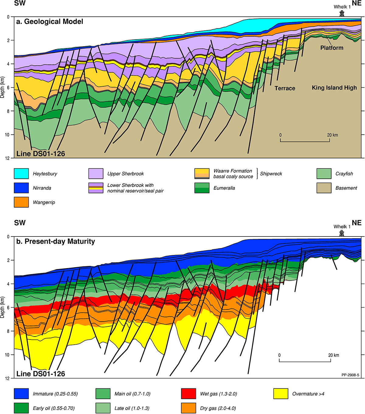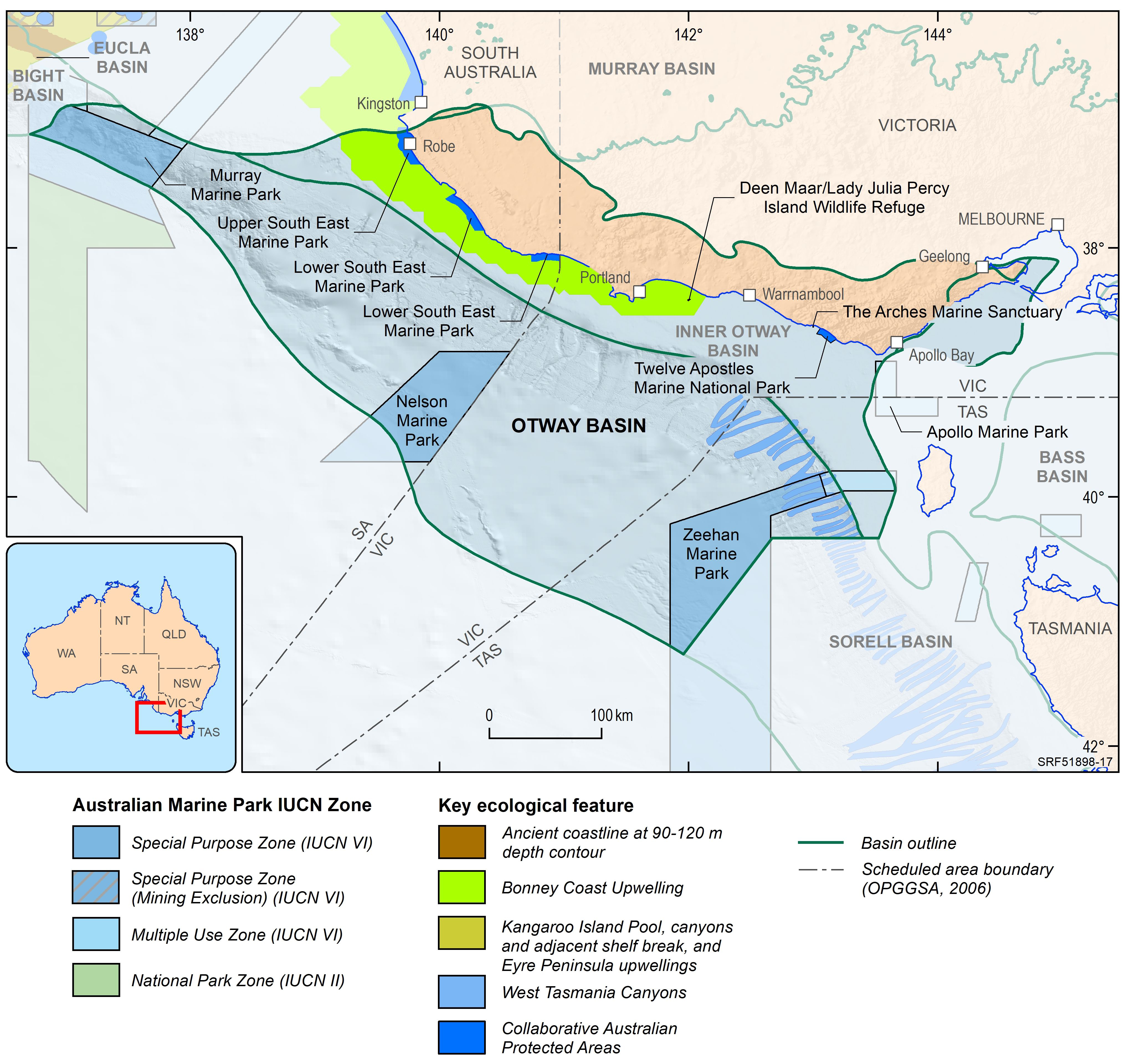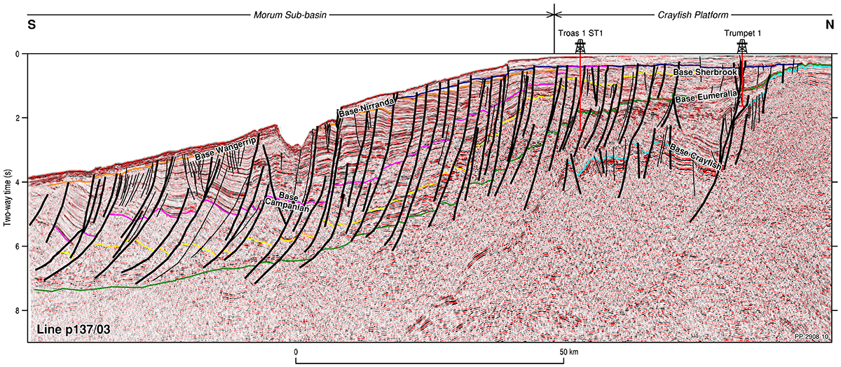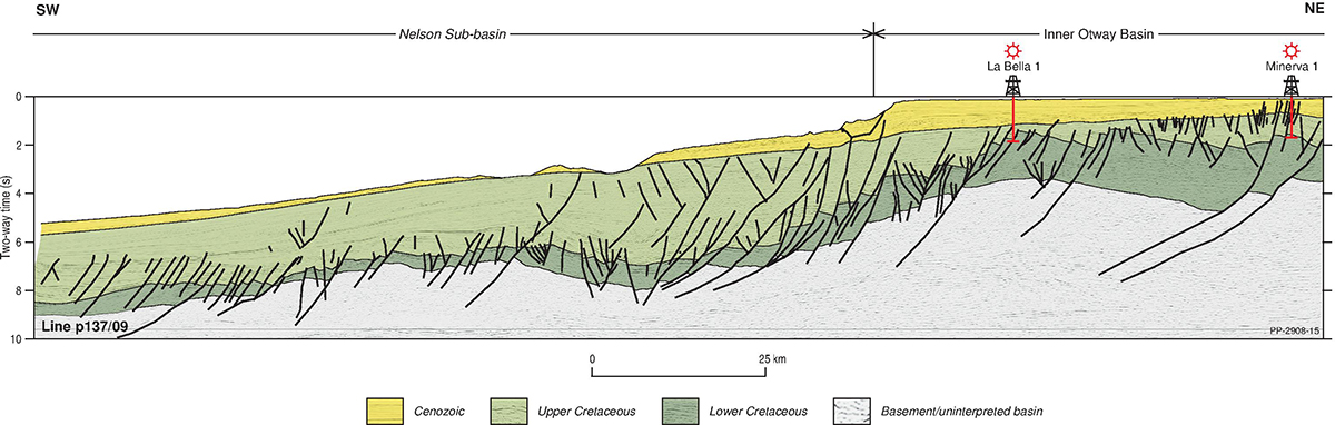The Otway Basin is a broadly northwest to southeast striking rift basin that extends for approximately 500 km along the onshore and offshore parts of southeastern Australia (Figure 1). Approximately 80% of the basin is located offshore and 20% onshore. In total, the basin covers an area of approximately 155 000 km2; 45% of the basin is located in Victoria, 35% in South Australia and the remaining 20% within Tasmanian jurisdiction.