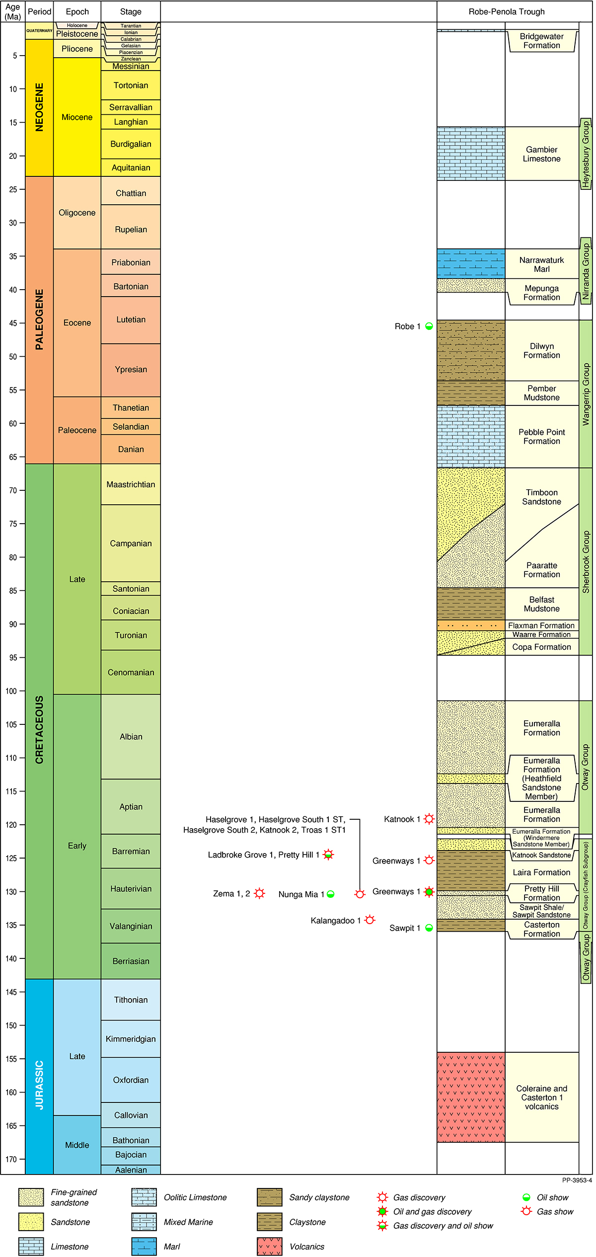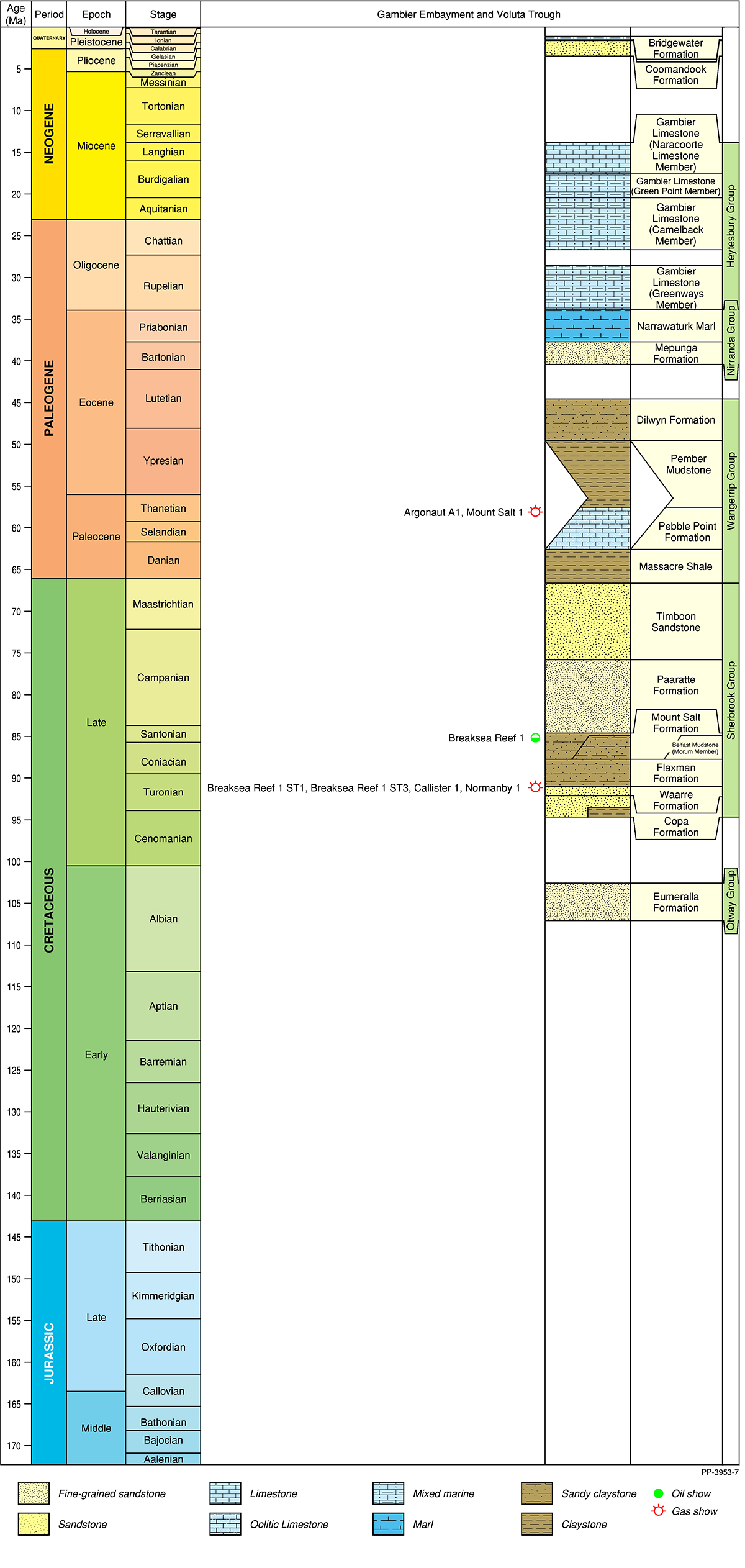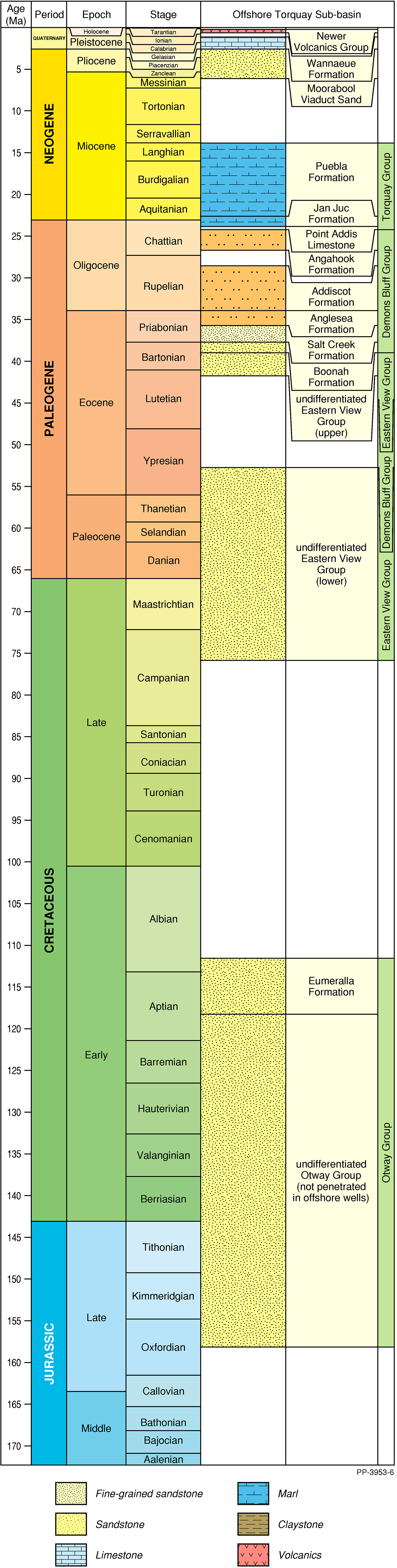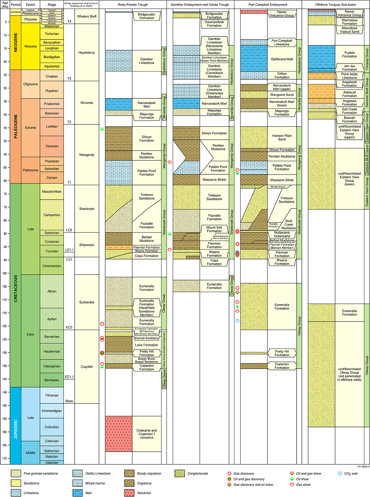 The Otway Basin is a broadly northwest to southeast striking rift basin that extends for approximately 500 km along the onshore and offshore parts of southeastern Australia (Figure 1). Approximately 80% of the basin is located offshore and 20% onshore. In total, the basin covers an area of approximately 155 000 km2; 45% of the basin is located in Victoria, 35% in South Australia and the remaining 20% within Tasmanian jurisdiction.