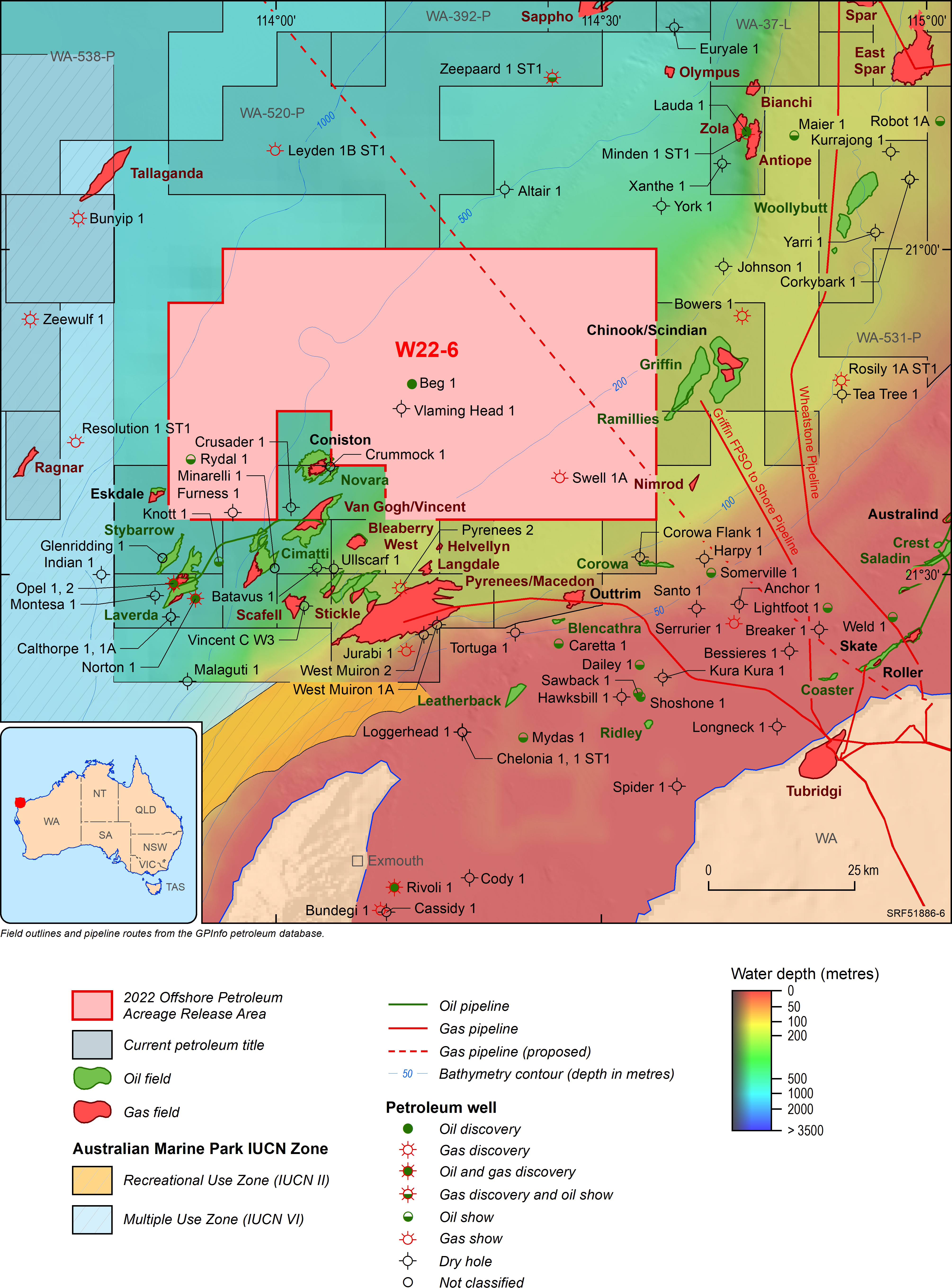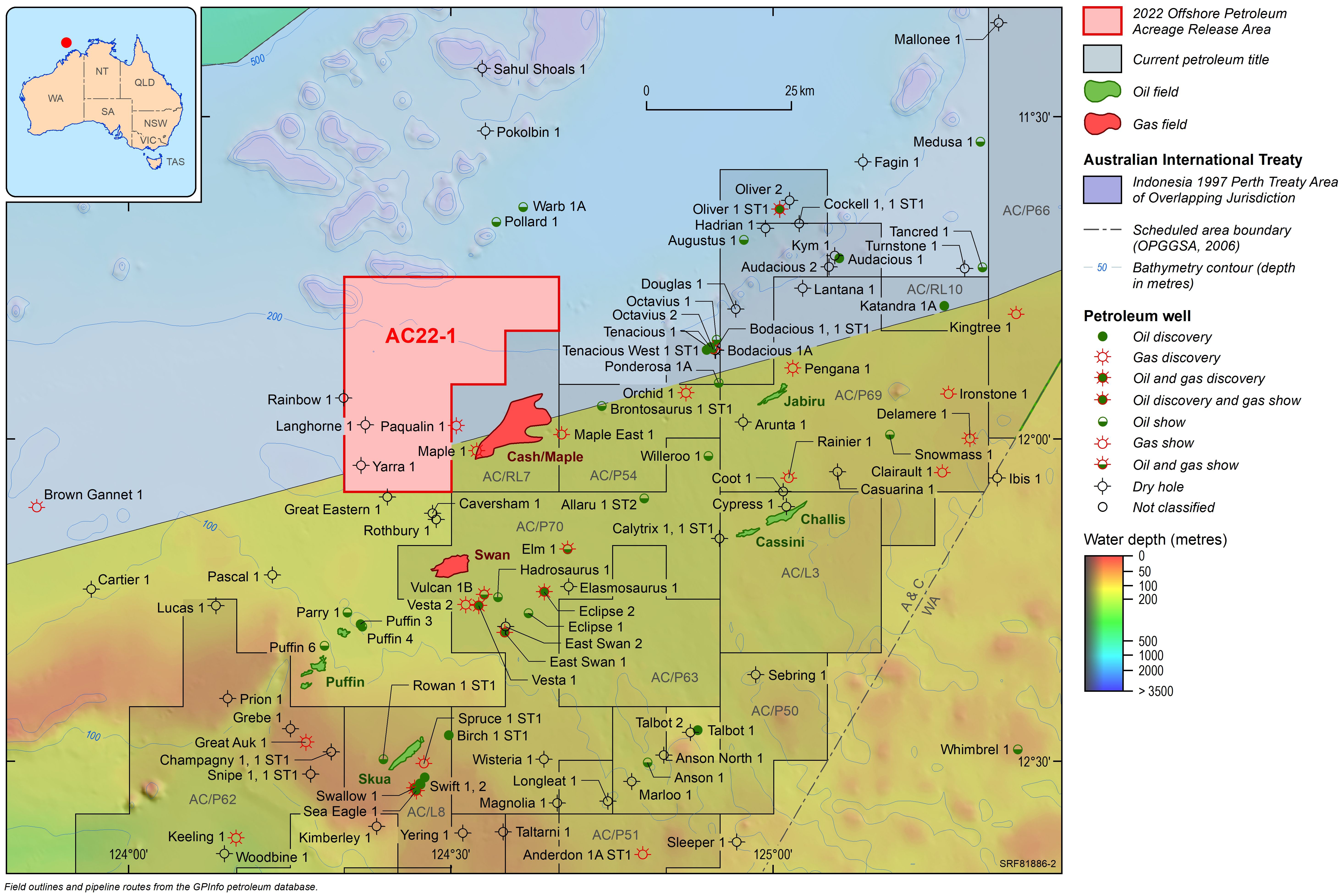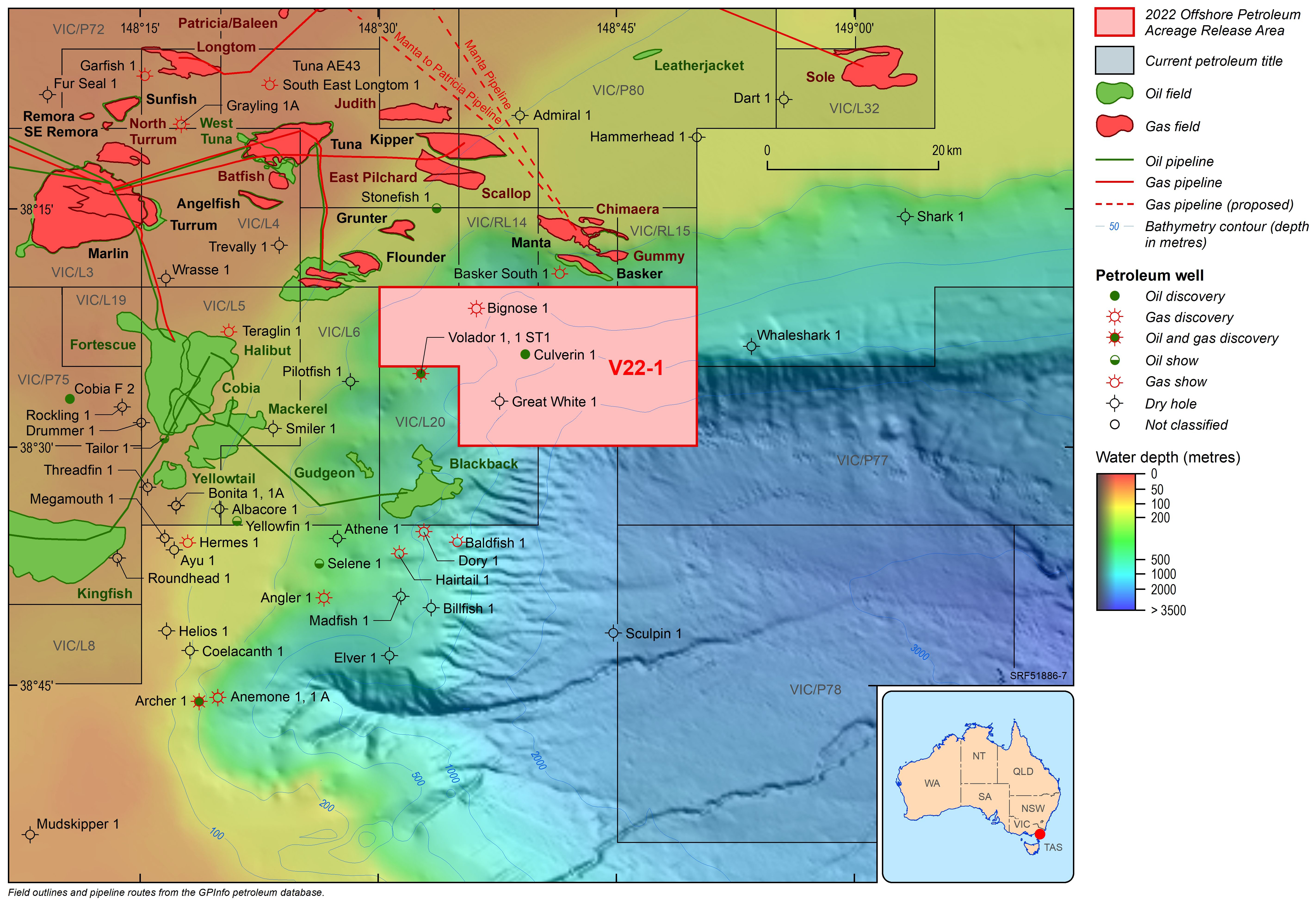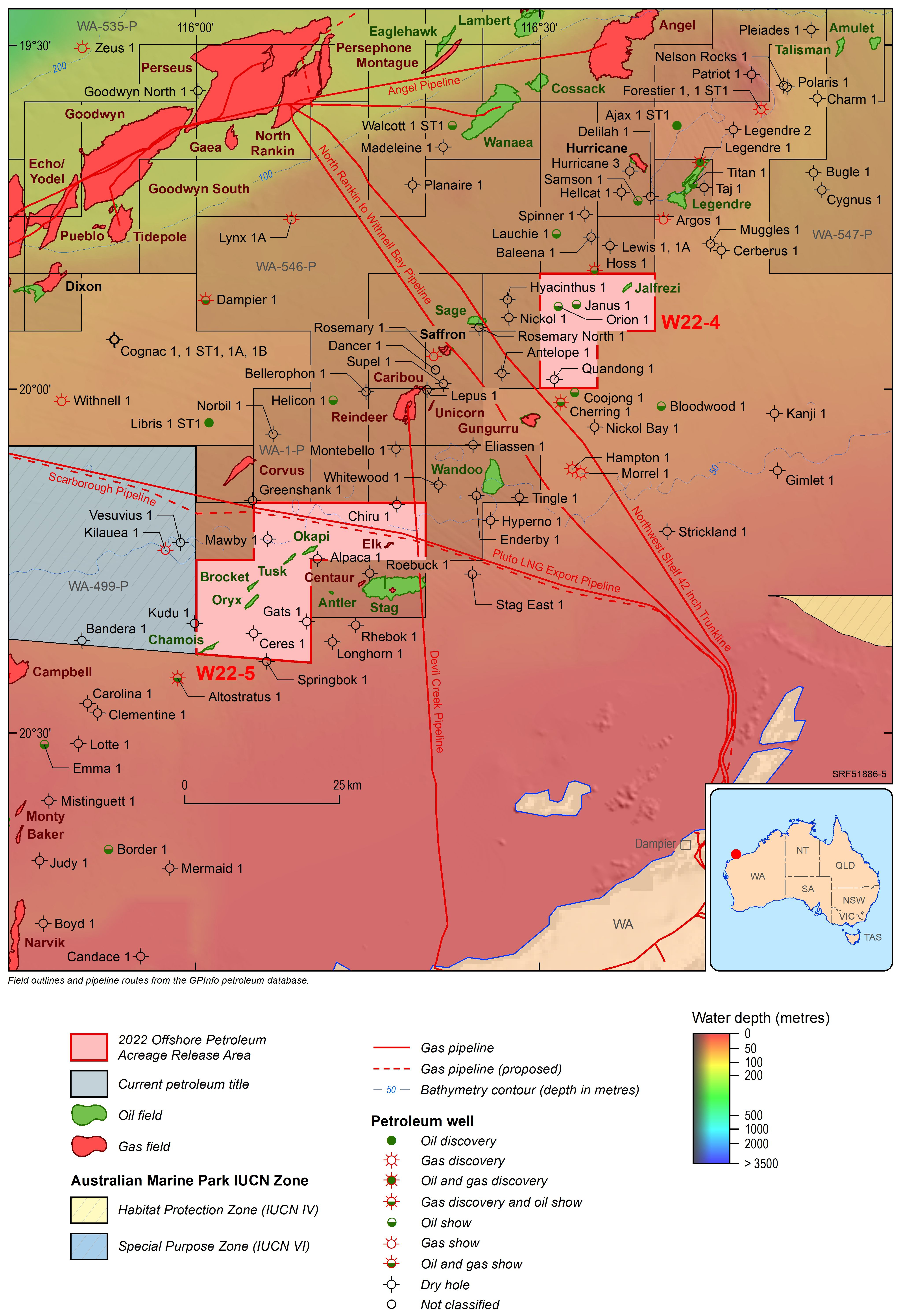 For information on the 2022 acreage release areas visit the Department of Industry, Science and Resources website. The release areas can also be viewed interactively via the Acreage Release persona on Geoscience Australia's Data Discovery Portal.