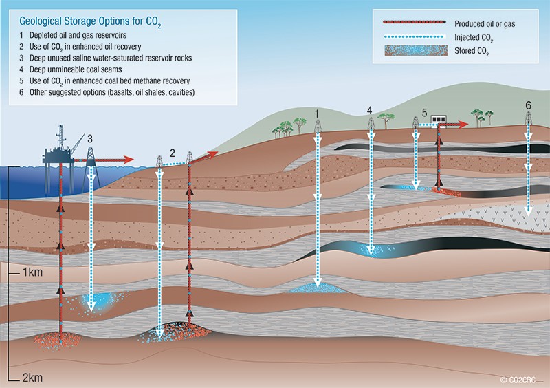 Carbon capture and storage (CCS), sometimes referred to as carbon capture, utilisation and storage (CCUS), takes carbon dioxide (CO2) captured from the burning of fossil fuels and other sources (such as from cement production, steel manufacture), and injects it deep underground into the tiny pore spaces present between grains in sedimentary rocks (such as sandstones). Typically, depths of storage are around 2 km underground.