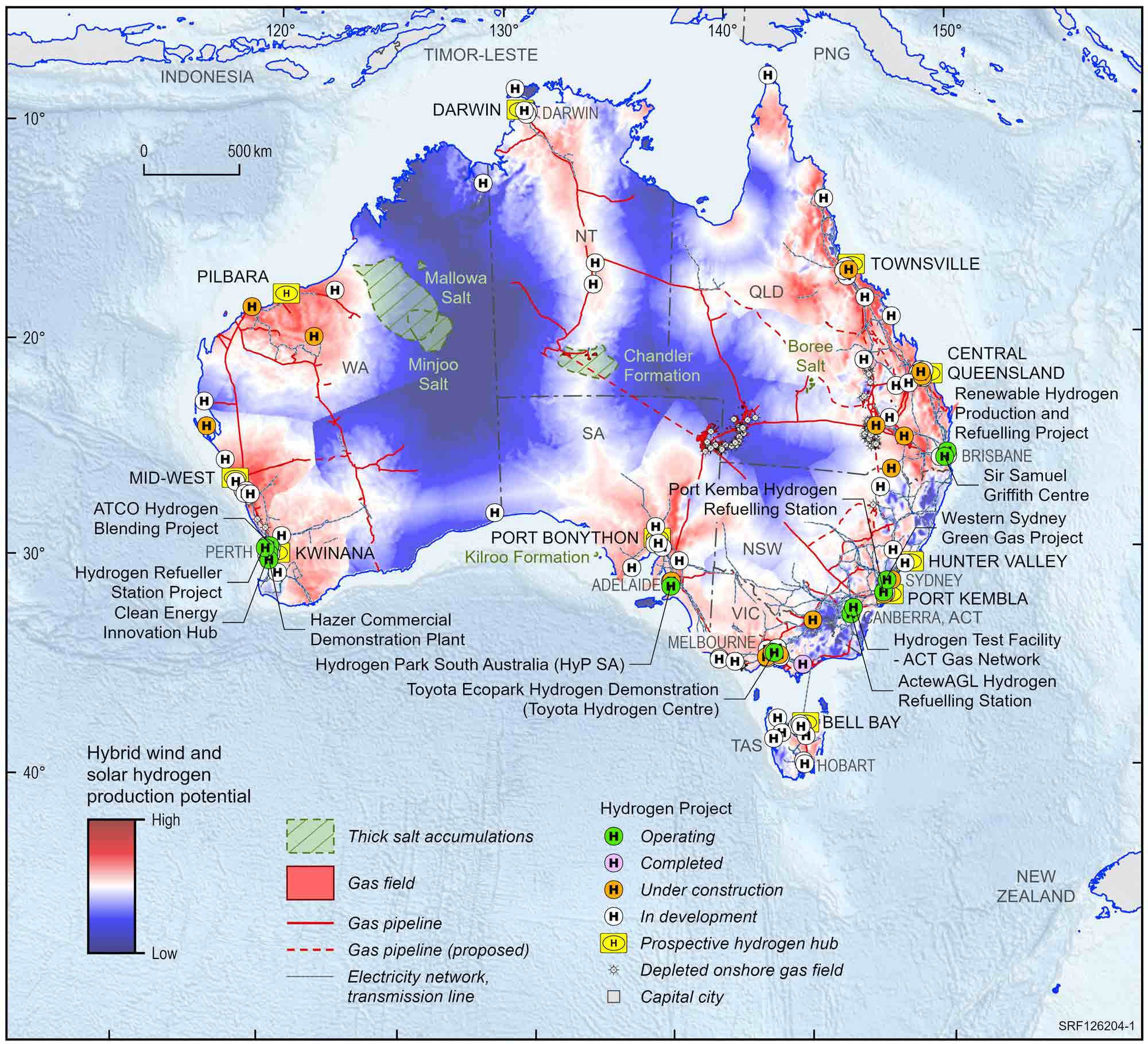 In 2019, Geoscience Australia was engaged by the Department of Industry, Science, Energy and Resources to complete a national-scale spatial analysis of Australia’s hydrogen production potential, to aid in the development of Australia’s National Hydrogen Strategy (released November 2019).