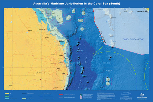 Geoscience Australia has produced a number of large format printable products to assist in the understanding of Australia's maritime jurisdiction. A schematic view of Australia's maritime zones, and a series of 28 electronic maps which depict Australia's Maritime Jurisdiction.
