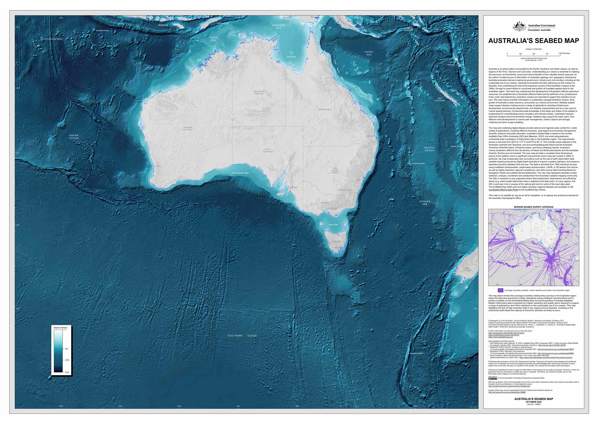 As an island continent, Australia is surrounded by oceans. We also have one of the largest marine jurisdictions in the world. In fact, it is approximately double the size of our land mass and 4 per cent of the world’s oceans. Understanding our ocean is essential to realising the economic, environmental, social and cultural benefits of this valuable natural resource. Accurate and reliable seabed maps are a vital input to any planning or decision-making in our marine region.