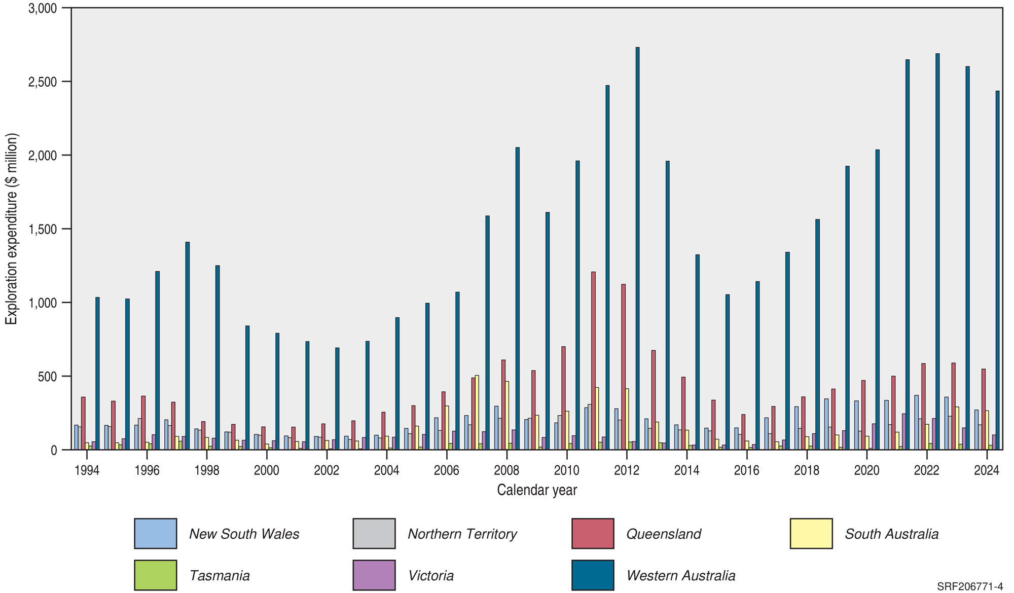 - Exploration expenditure by jurisdiction in 2024 (Figure 4) was: