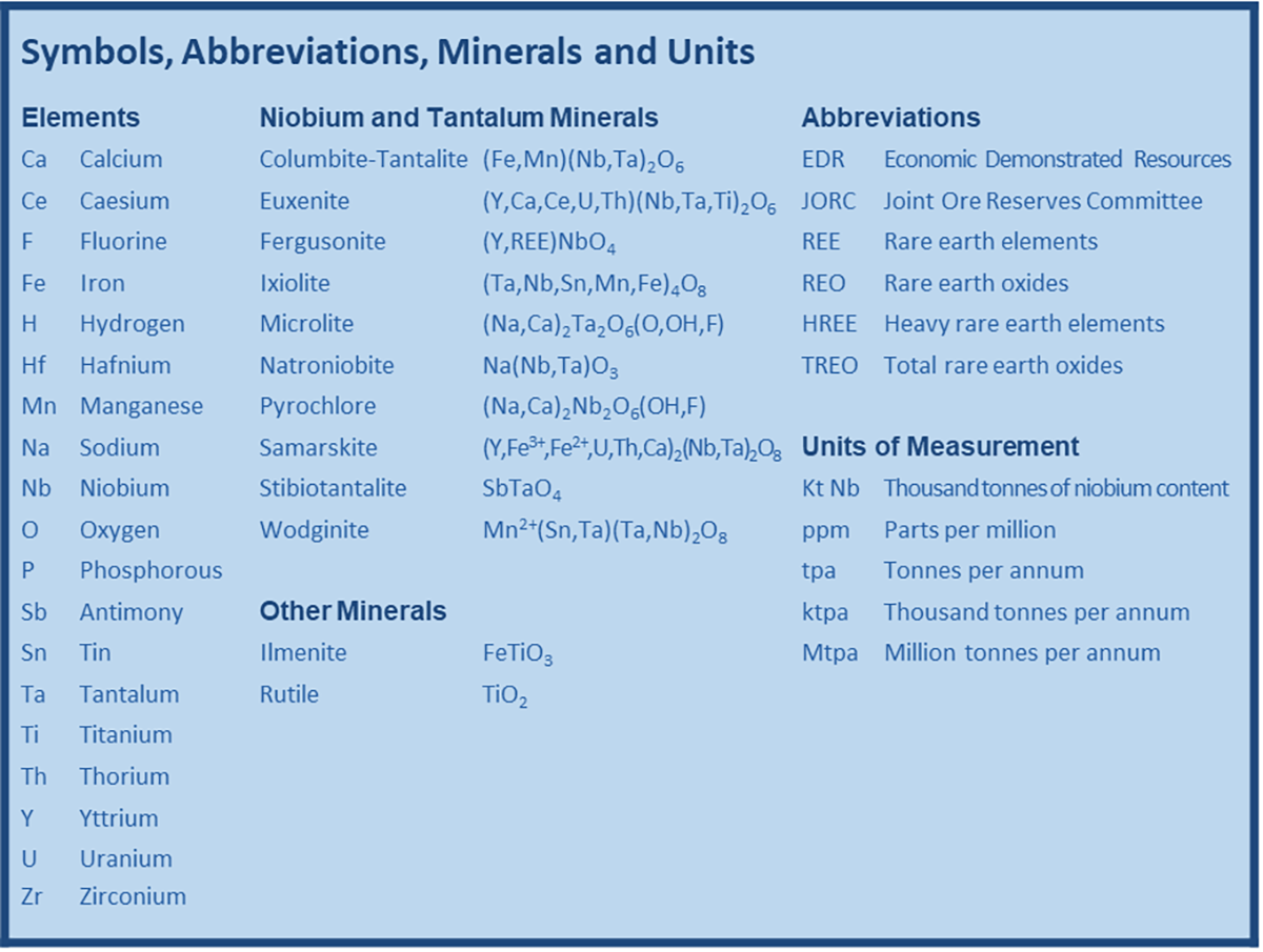 As at December 2018, Proved and Probable Ore Reserves of niobium reported in compliance with the JORC Code amounted to 58 kt (Table 1), all of which is from the Dubbo Project.