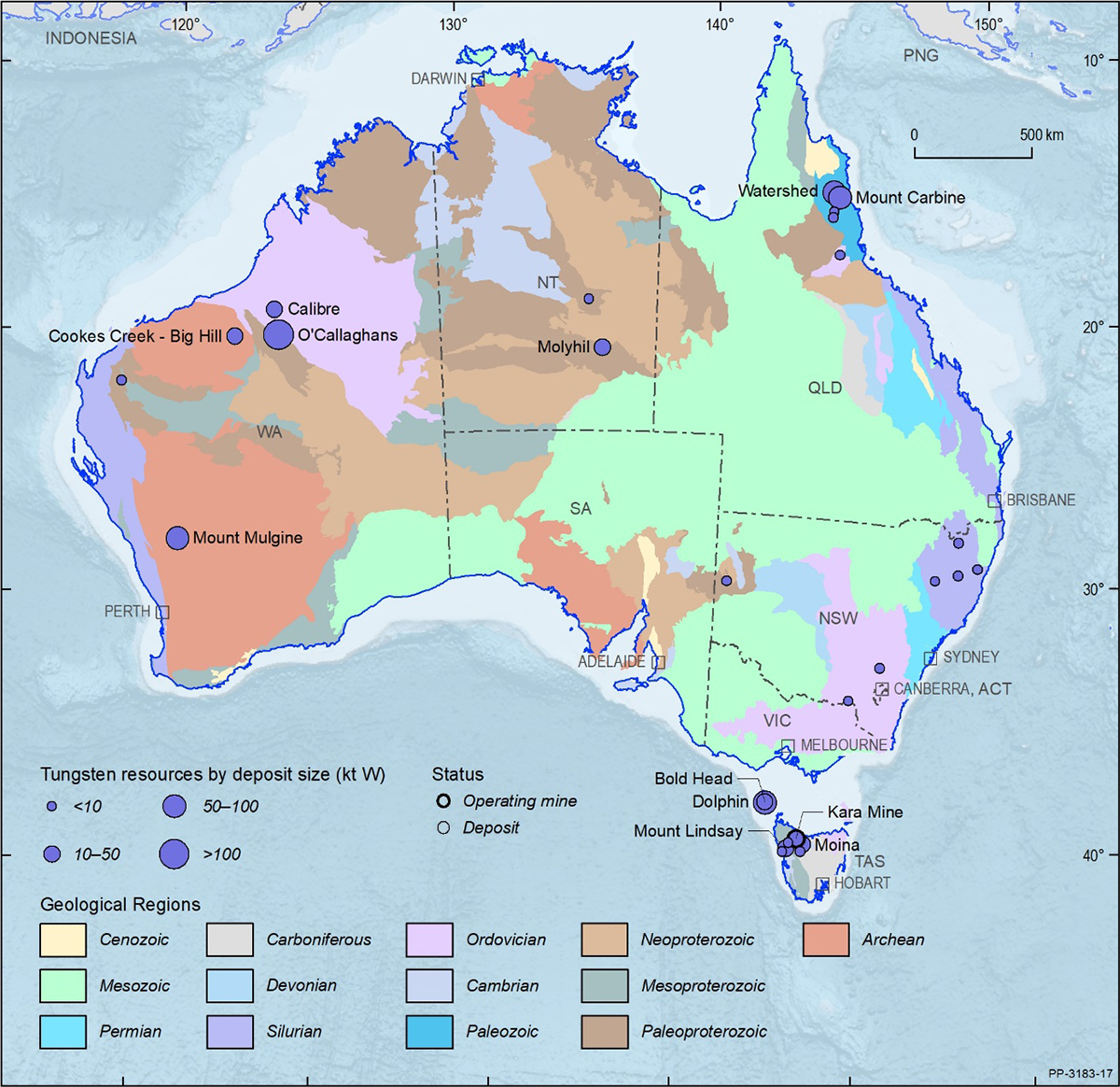 Figure 1. Australian tungsten deposits and operating mines 2018.