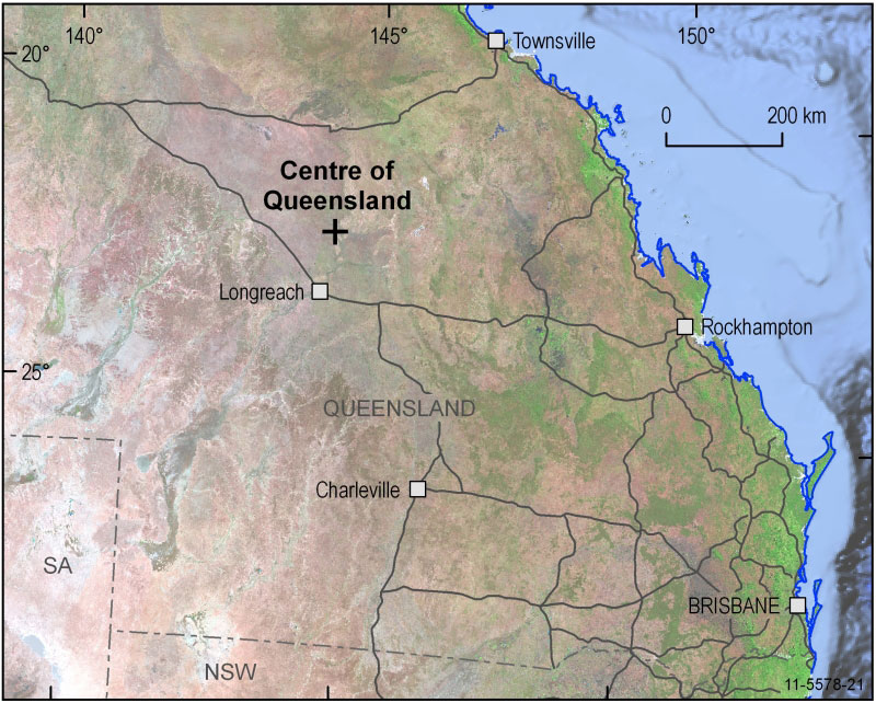 In Queensland, the geographical centre is located 17km north-west of Muttaburra. Also famous from a paleontological perspective, this region was once a pre-historic inland sea. A wealth of fossilized remains has been uncovered here, and when a previously undiscovered species was found, it was became known as the Muttaburrasaurus.