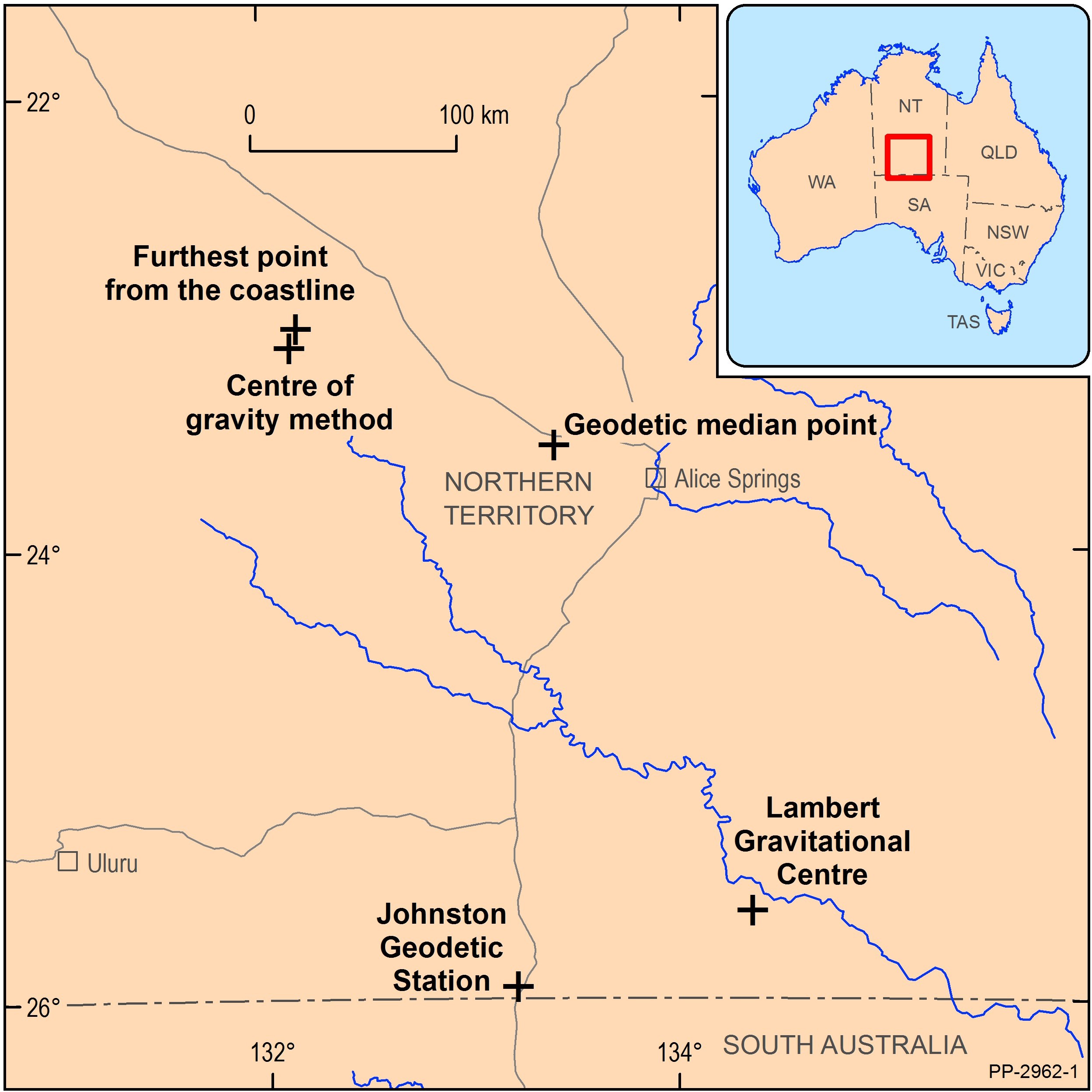 Over time and with ingenuity, several other methods for calculating the possible centre of mainland Australia have been developed. Covered in more detail below, the results enclose an area which includes the town of Alice Springs and the MacDonnell Ranges, two icons of central Australia.