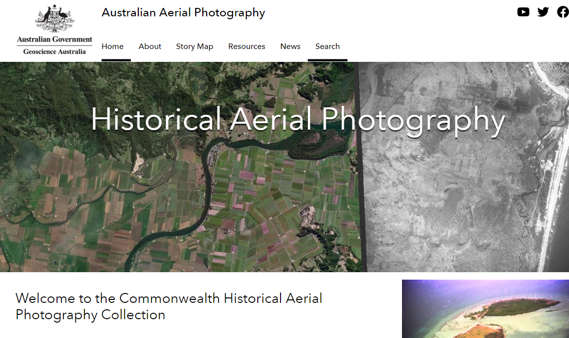 Geoscience Australia has developed the Historical Aerial Photography (HAP) collection in an online data delivery system. This application allows users to search and download the Commonwealth aerial photography collection for free.