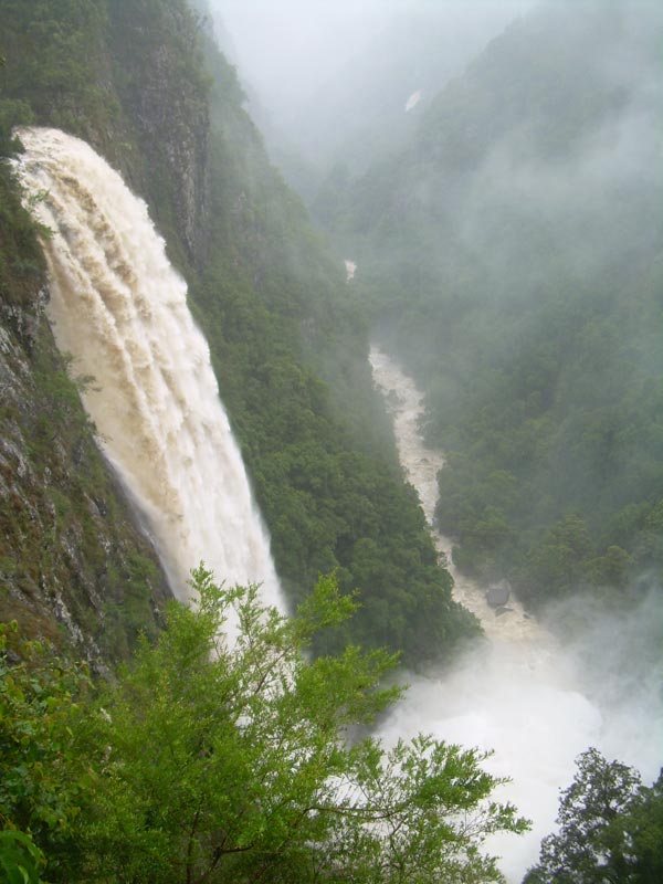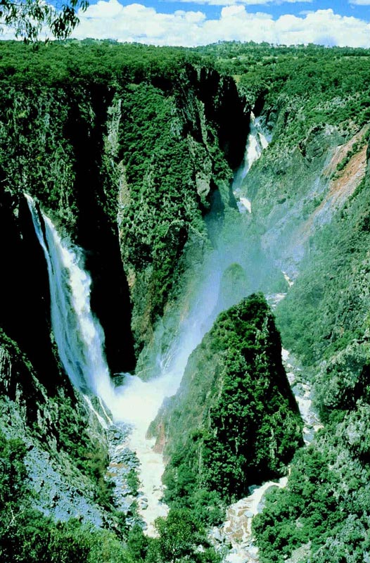 In the image at the left, Wollomombi Falls are closest to the camera and Chandler Falls can be seen further upstream on the right.