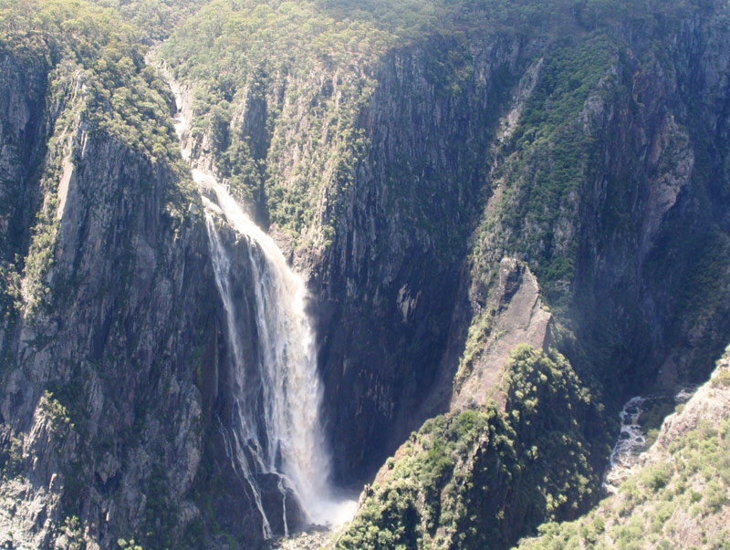 Located within the World Heritage listed Oxley Wild Rivers National Park east of Armidale on the edge of the New England Tablelands, Wollomombi Falls includes cascades and a horsetail drop of 260 metres. It is sometimes quoted as the tallest waterfall because, with the inclusion of the continuous upper cascade leading to the final drop as its highest point, it has a total fall of 424 metres.