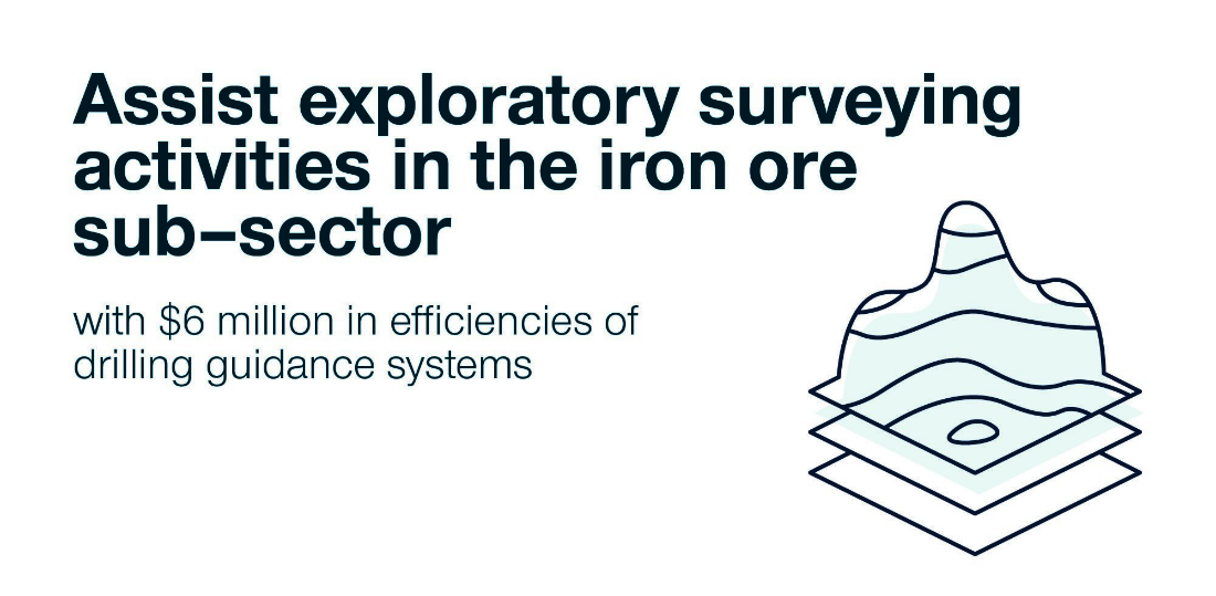 Assist exploratory surveying activities in the iron ore sub-sector with $6 million in efficiencies of drilling guidance systems