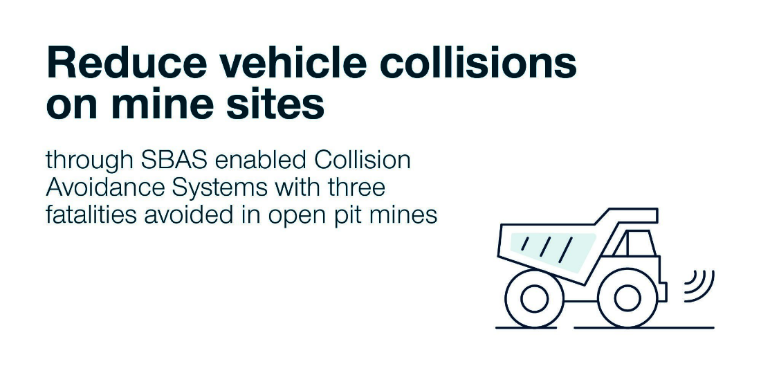 Reduce vehicle collisions on mine sites through SBAS enabled Collision Avoidance Systems with three fatalities avoided in open pit mines