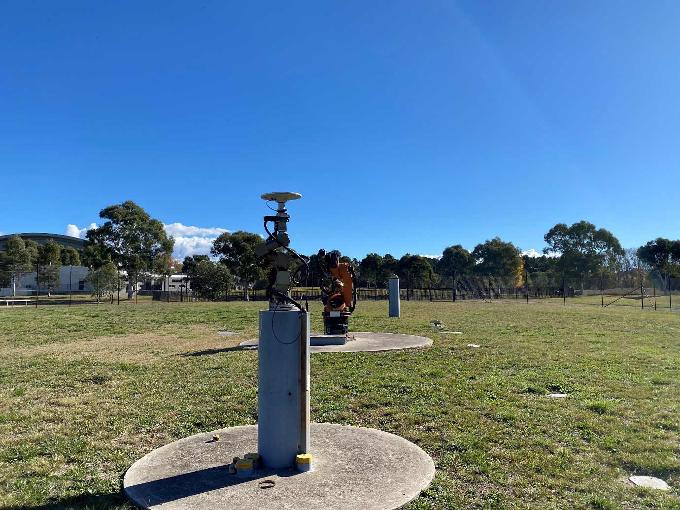 The second is a Kuka system, which enables heavy-lift experiments to assess the impact of station and antenna design on positioning accuracy. The Kuka robot has a lifting capability strong enough to support the calibration of GNSS antennas and monuments heavier than 15 kg and up to 60 kg. The Kuka system also supports a range of motions that enable a wide variety kinematic GNSS research projects, such as earthquake simulation.