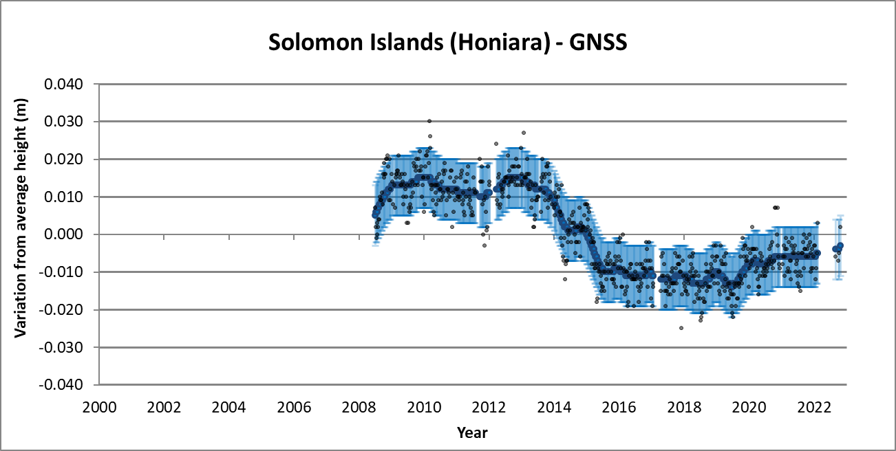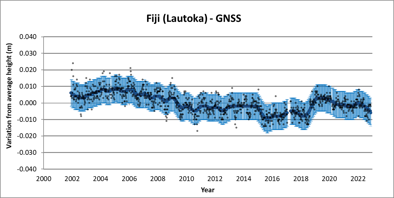 NOTE: These results do not include information regarding sea level data. BOM is currently analysing and linking the absolute land motion data with tide gauge data to create an absolute sea level data set for Pacific Island countries to improve their understanding of sea level changes.