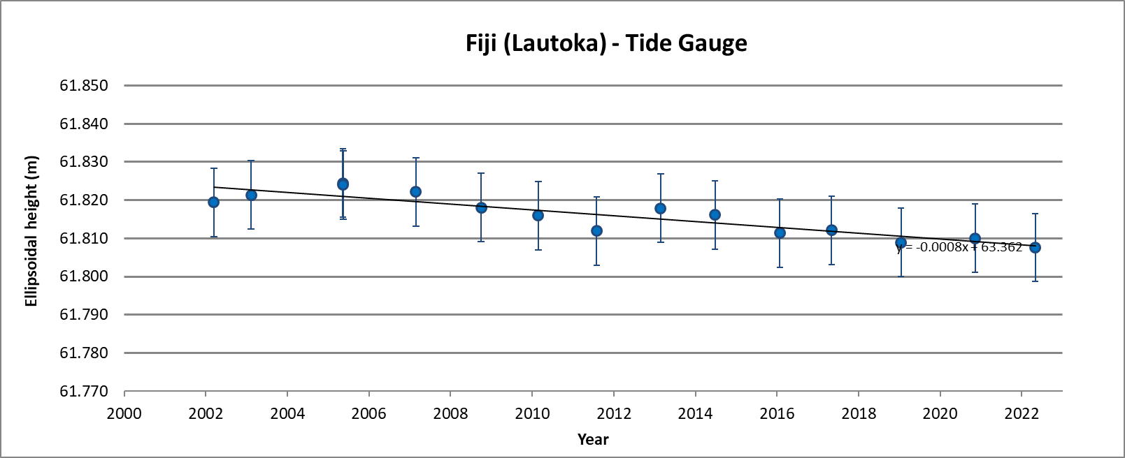 • Linear regression of the tide gauge height data indicates the tide gauge movement is -2.2 ± 1.2 mm/yr at 95% Confidence Interval.
