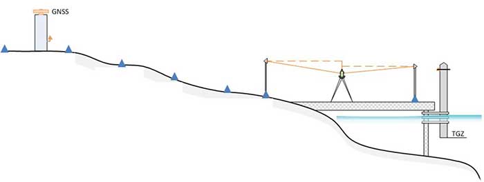 To compute the absolute movement of the tide gauge, the analysis of the GNSS and levelling is combined together. This is done by: